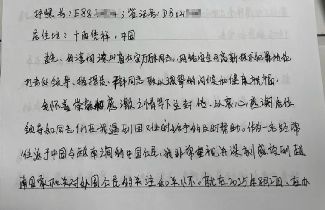 近日,中国小伙儿李立给越南谅山省公安厅发感谢信,感谢当地公安神勇果断出击,迅速帮助止付,使得自己被电信诈骗骗去的4亿越南盾失而复得!